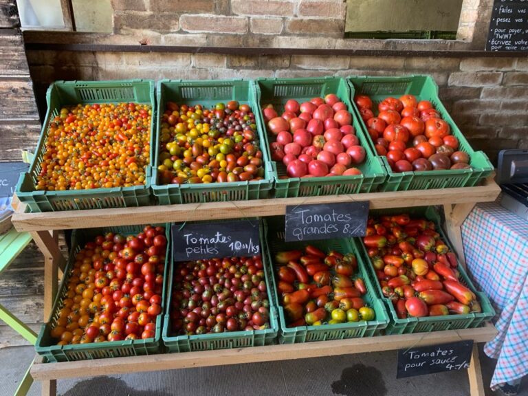 – légumes frais (notre production, Ferme des Biolettes, Domaine des Fermens)